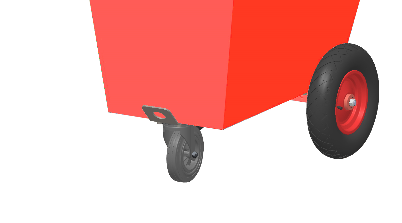 Pulverlakkert Med løftebraketterTo 400 mm luftfylte hjul Ett 200 mm dreibart hjul