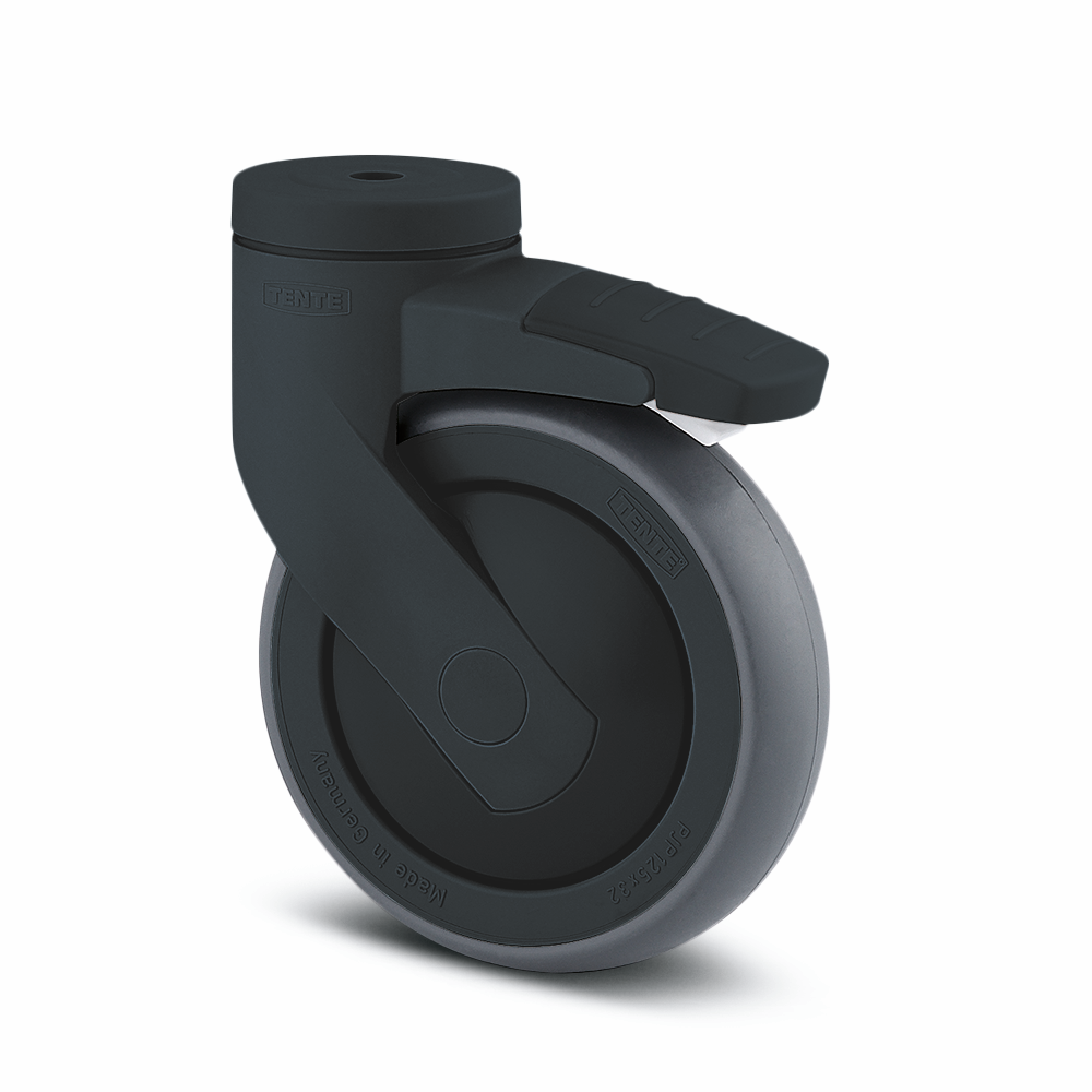Felg: Polypropylen (PP), Bane: TENTEprene,grå termoplastisk gummi svertefri, rillekulelager