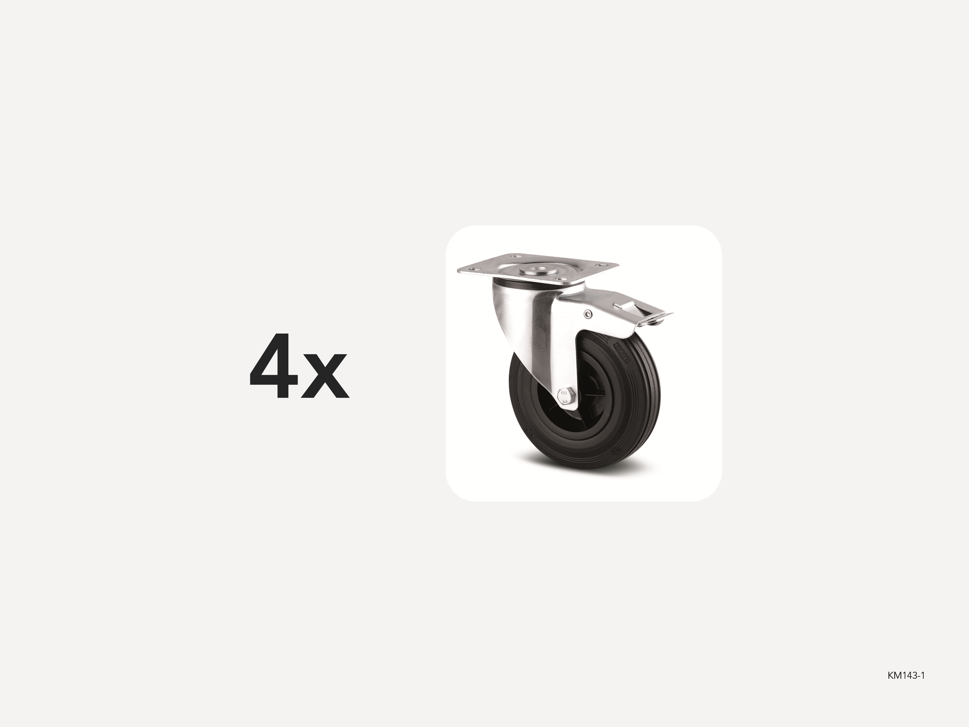Reservehjul i massiv gummi 143-1 143-1 4 dreibare hjul med bremser Ja 800 12 75